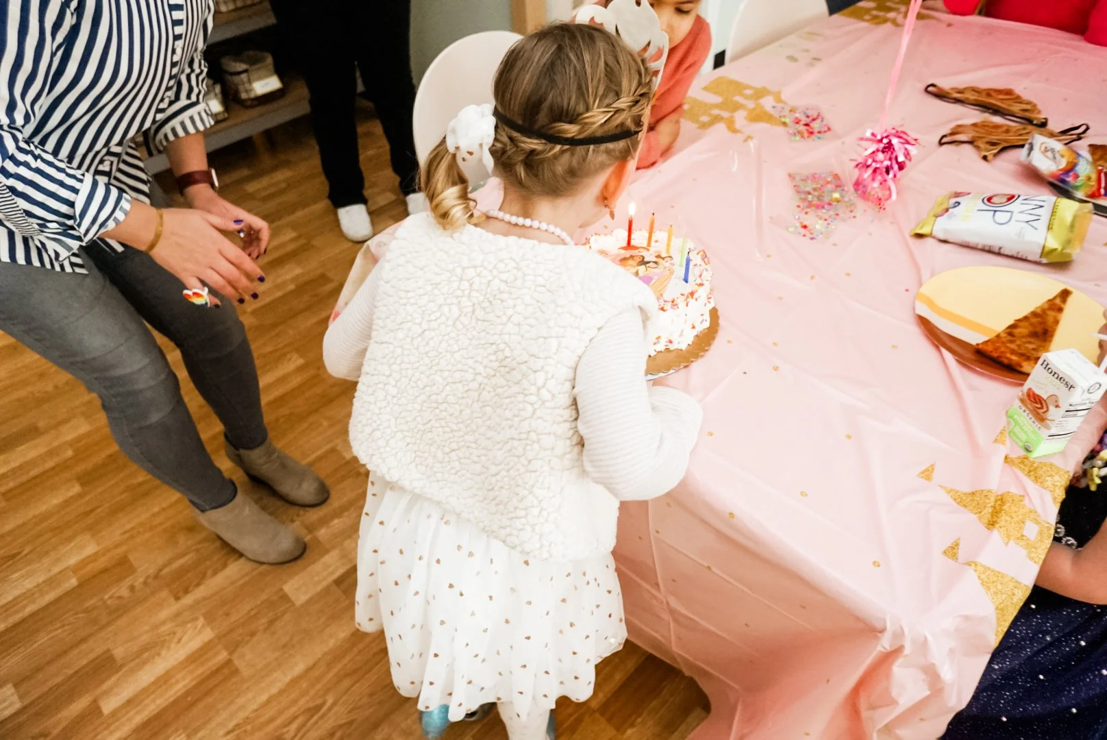 Each kid gets to pick one of three styles (braid, bun, or half-up space buns)